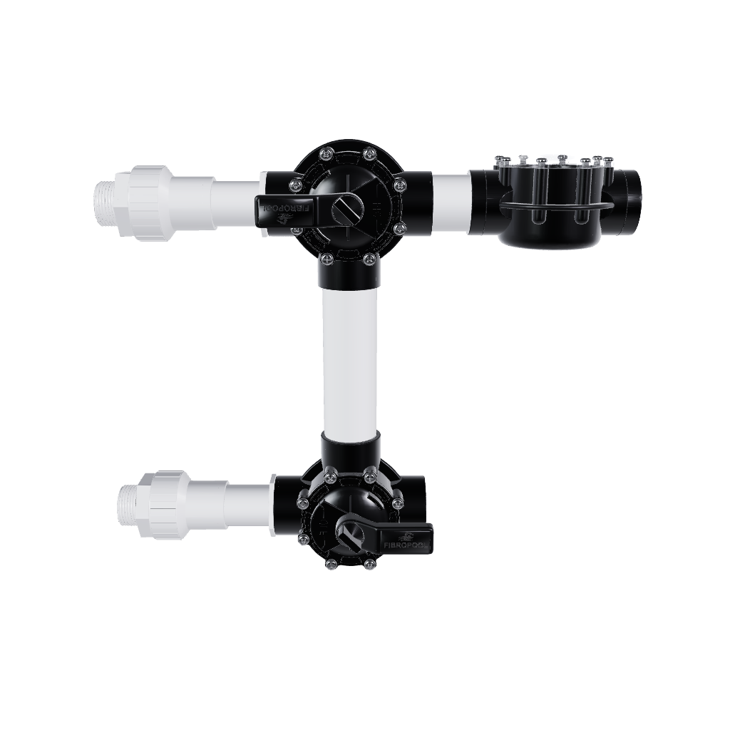 Simplify installation and maintenance of the FibroPool FH285-i heat pump with this durable, pre-assembled bypass kit. Includes a check valve for added system safety and convenient winterization.